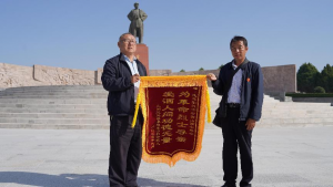 参加这次祭祀活动的有大同灵丘籍李茂烈士家人(侄子侄女们)、中国人民志愿军烈士寻亲山西专委会领导、中志协应急救援万柏林服务队高学军队长领队一行10人、太原市伞头秧歌协会张岳林会长领队一行3人共20余人。上午九时主持人王建平主任首先与全体人员向革命烈士行三鞠躬礼,接着李茂烈士家属代表侄子李世春讲话,他满怀深情哽咽的说:在这里我要代表全家特别感谢中国人民志愿军烈士寻亲山西专委会的领导以及大同中心的孙爱娥主任等同志,是你们圆了我们全家的寻亲梦让我们团聚。接着李世春代表全家为中国人民志愿军烈士寻亲山西专委会赠送了锦旗,中国人民志愿军烈士寻亲山西专委会副主任李桂民代表专委会向李茂烈士家属馈赠了国家一级美术师、国务礼品特供艺术家田振宇老师的书法作品《惠风祥云》,最后全体人员随家属来到墓区为李茂烈士祭祀,墓碑前李茂烈士侄子侄女一边奠酒擦洗墓碑,一边泪流满面摆放供品,声声”大伯、大伯…”声泪俱下诉说着76年家人的思念和等待,”我们想找你,可不知你在那里”,在“大伯大伯你回家吧、你回家吧”的呼唤声中祭祀落下帷幕!
